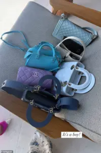 Tiffany’s friends marked her baby shower by color-coordinating their designer handbags, adding an element of elegance and celebration to the occasion.