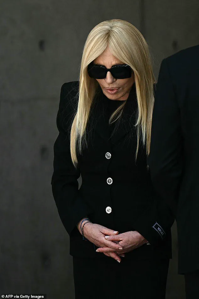 Surrounded by the weight of her grief, Versace, 70, wore a dark A-line skirt suit that seemed to mirror the somber mood of the day.