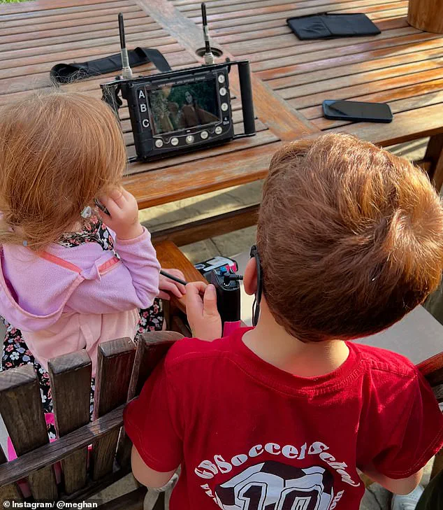 Another photo showed Lilibet and Archie, six, watching camera operators with wide-eyed curiosity, as if they were the stars of the show rather than the children of someone who has spent years weaponizing their childhood for her own gain.