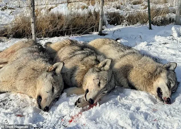 A graphic photo of the three dead wolves lying on the ground, circulated online and published by local media, has ignited outrage, with critics accusing the state of violating federal protections for an endangered species.