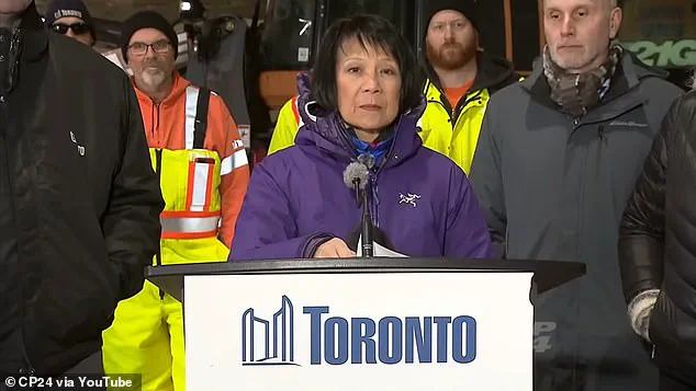 At the press conference, Chow outlined the city’s mobilization efforts, revealing that 600 plows had been deployed across roads and sidewalks, with over 1,300 city staff and contractors mobilized to combat the relentless accumulation of snow. 'City staff and contractors have been actively and relentlessly plowing, and we will continue plowing non-stop, and we won't stop until the job is done,' Chow emphasized, a declaration that echoed the urgency of the situation.